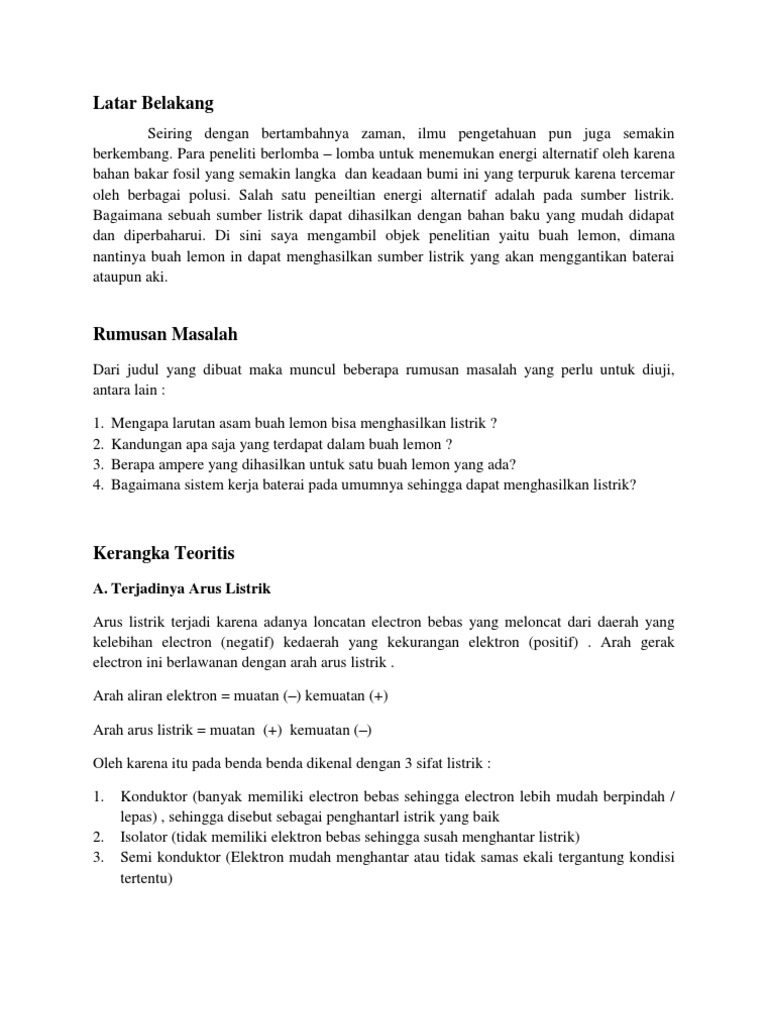 Laporan Percobaan Kandungan Listrik Pada Buah Seputar Laporan from imgv2-1-f.scribdassets.com Letakkan pot a di dalam ruangan dan. Korosi dapat digambarkan sebagai sel galvanik yang mempunyai hubungan pendek dimana beberapa daerah permukaan logam bertindak sebagai katoda dan lainnya 3. 5.1 percobaan penghantaran energi listrik. Posted by nanang ajim | posted on 1 catatlah pada tabel jumlah paku kecil yang menempel. 5 contoh teks laporan percobaan atau eksperimen. Pada awalnya keperluan percobaan, orang menghasilkan listrik sendiri, dengan menggosokkan benda tertentu. Pada melakukan analisis data memerlukan pikiran kritis. Ini materi pelajaran bahasa indonesia, kelas 7 atau kelas 9, sekolah menengah pertama (smp).